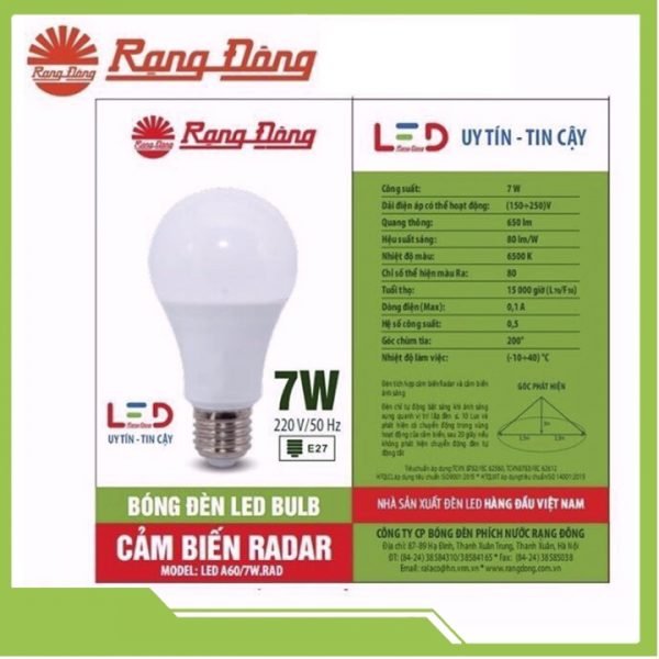 Bóng Đèn LED Bulb Cảm Biến Rạng Đông A60/7W.RAD – 3000K, 6500K
